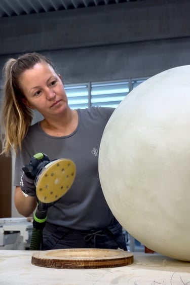 Ich entwerfe und produziere meine Dekorationen selbst – von Objekten aus Mikrozement, Papier und Stroh über Pappmaché bis hin zu freigeformten Skulpturen aus Styropor und GFK. Mein Ziel ist es, durch Material, Form und Farbe Räume zu schaffen, die Menschen berühren und begeistern.